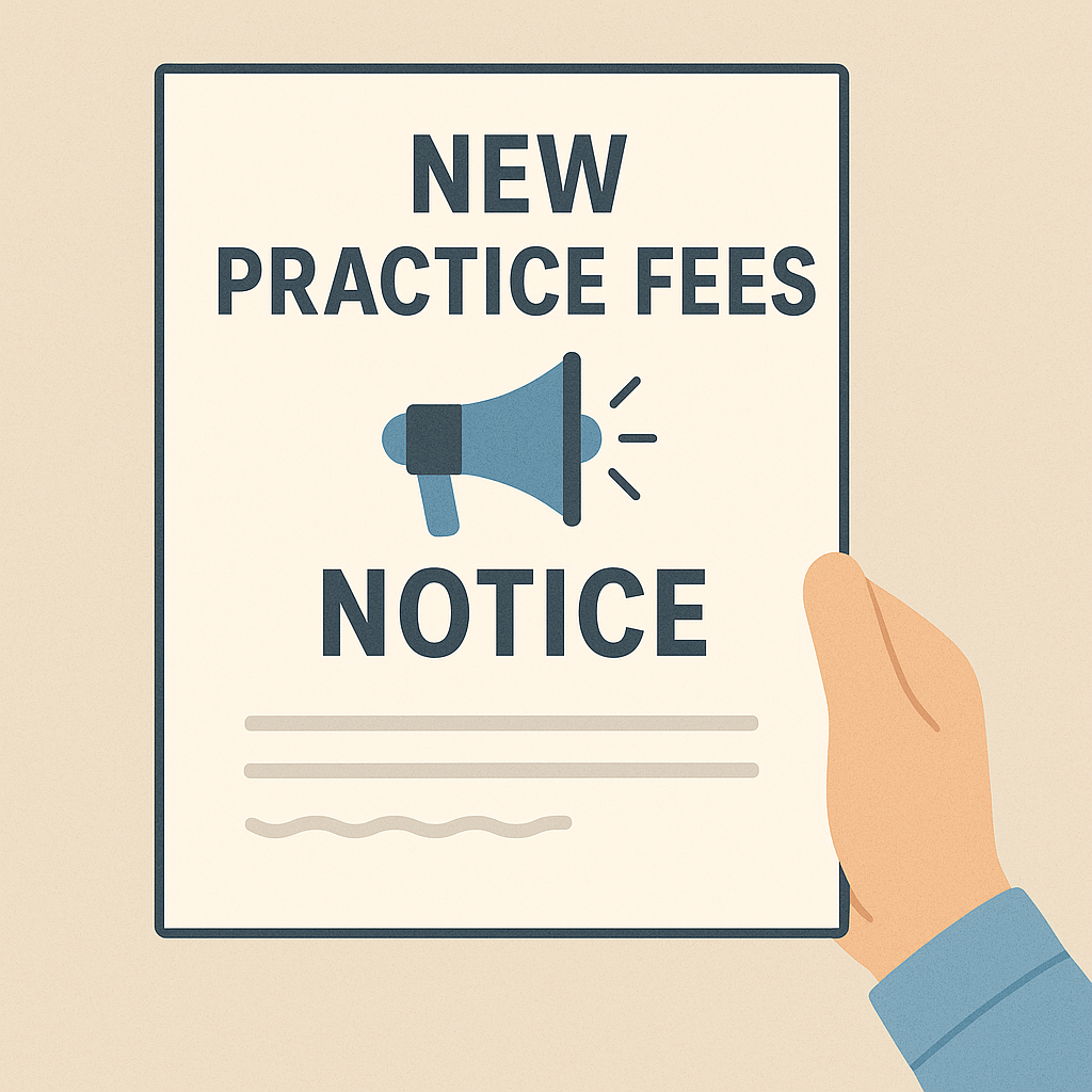 Due to rising healthcare costs, increasing inflation and the freezing of Medicare, we have made the difficult decision to start private billing. In order to maintain and sustain high quality medical care for our patients, a private fee will be introduced.